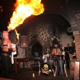 Sluit je avond af in de beroemde middeleeuwse taverne van Dětenice, de grootste in zijn soort in Tsjechië. Geniet van een authentiek middeleeuws banket met onbeperkt lokaal bier en Moravische wijn. Laat je vermaken door live muziek uit die tijd, vuurshows, narren en boeiende optredens van fakirs en dansers.