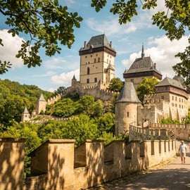 Volgende stop: het schilderachtige Karlstejn. Met een korte wandeling of een ritje met een lokaal busje bereik je het imposante kasteel. Stap binnen in de 14e-eeuwse residentie van de Boheemse koningen, waar ooit de kroonjuwelen en andere koninklijke schatten werden bewaard. Bewonder de indrukwekkende kunstcollecties en historische relikwieën tijdens de Engelstalige rondleiding.