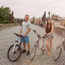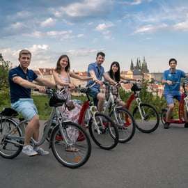 Bekijk de hoogtepunten van het geweldige Praag tijdens een rondleiding op een e-bike/e-scooter met gids. Je ziet iconische bezienswaardigheden zoals de Praagse Burcht, de Petrin-toren, het Wenceslasplein, de Karelsbrug en nog veel meer.