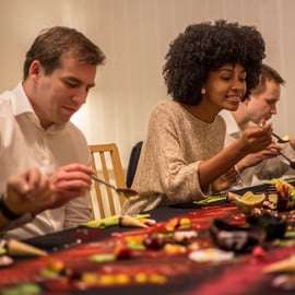 Ik nodig je uit om te beginnen met hapjes die je eetlust opwekken, door te gaan met heerlijke maaltijden en nieuwe smaakcombinaties te ontdekken. Sluit de avond af met een spectaculair eetbaar schilderij als toetje.