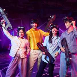 Naast een perfecte spelervaring voor een groep van maximaal acht personen, bieden we je ook een stijlvolle achtergrond die ideaal is voor feesten, partijen en teambuilding. Je vindt er een volledige bar, een lounge met tafelvoetbal en arcadespellen en nog veel meer. Betreed de wereld van Zero Latency en geniet van het entertainment van de toekomst.