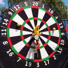 2. Giant Foot Darts - de vrijgezel wordt aan de foot darts gehangen en jij slaat hem met zachte ballen.