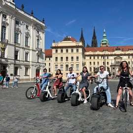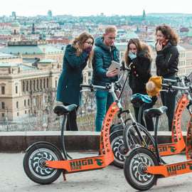 Bekijk de belangrijkste bezienswaardigheden van Praag tijdens een tour van 1,5, 2 of 3 uur op een comfortabele e-scooter (Hugo Bike). Je kunt ook kiezen voor een tour van 3 uur op een Fat Tire e-scooter (SCROOSER). Kies tussen een tour in kleine groep met andere reizigers of een privétour voor alleen jouw groep, zodat de route helemaal naar jouw wensen kan worden aangepast, met extra talen zoals Spaans, Frans of Russisch.