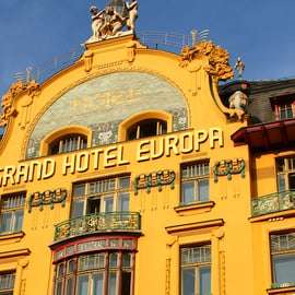 Bezoek de adembenemende Lucerna-bar en het elegante Grand Hotel Europa. Tijdens de wandeling trekken we parallellen met de Praagse kubistische en rondokubistische architectuur, met hoogtepunten als het Huis van de Zwarte Madonna en de Bank van de Legioenen.
